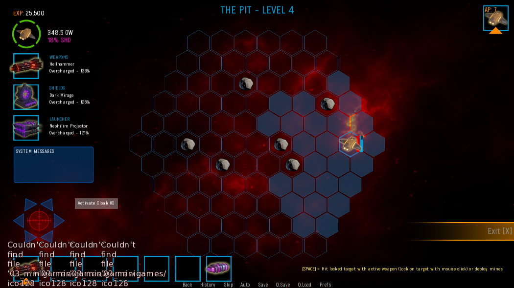 - Nephilim projector & Kigal's Wratch: If an "underverse effector is added, during the battles the game warns of a missing icon "03_minigames/ico128 ITMAddOnUnderverse.png"